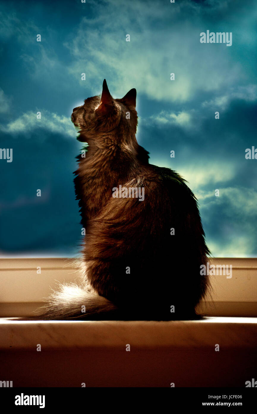 Cat Sitting By The Window And Looking At The Sky Stock Photo Alamy